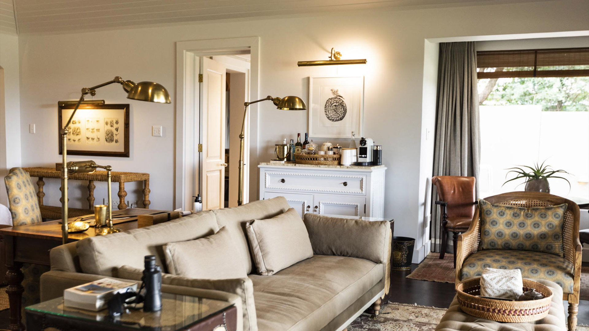 Each suite is a secluded, elegant space featuring private verandas, heated plunge pools, outdoor showers, and generous interiors designed for privacy and comfort. Suites look directly over the Sand River, creating a constant connection to wildlife.