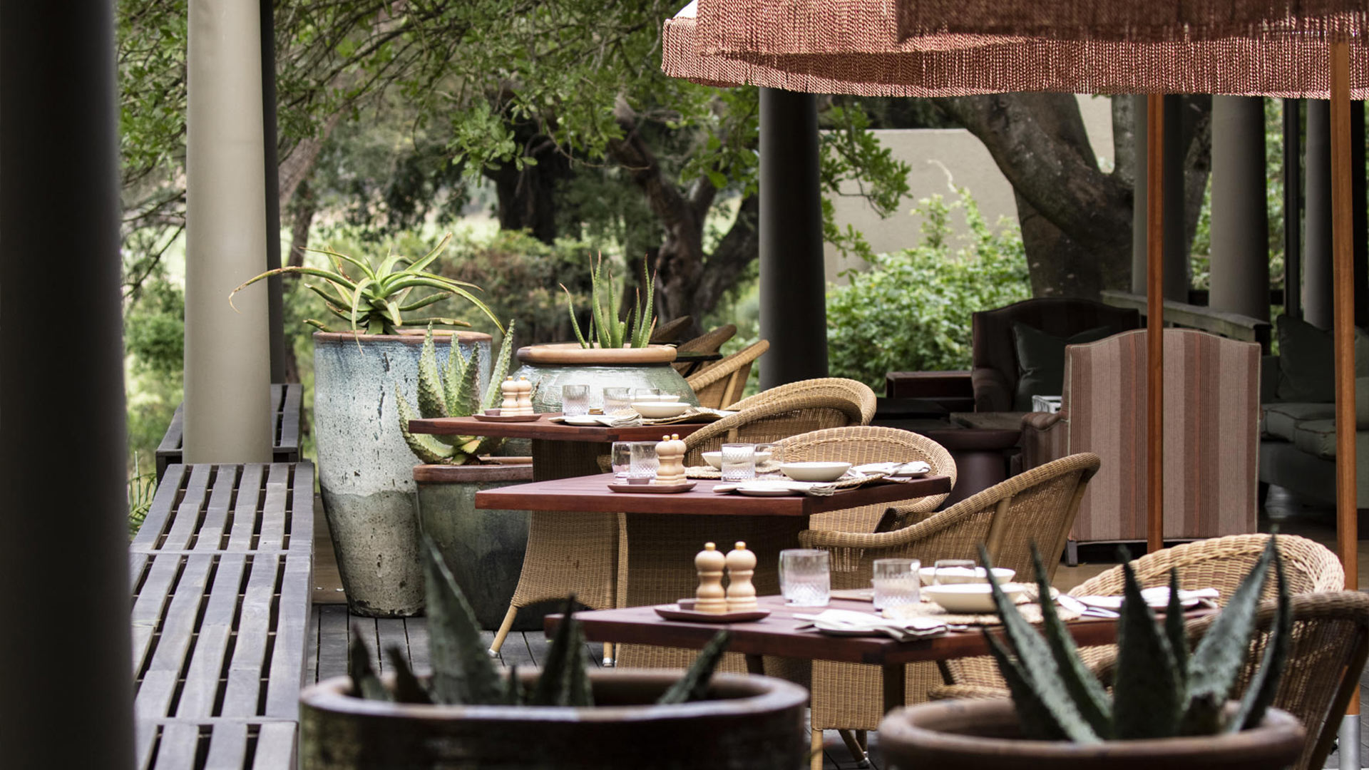 The main lodge includes a library, safari boutique, gym, spa, and a spacious dining area serving fine cuisine. Meals can be enjoyed in the formal dining room, beneath the stars, or on the terrace overlooking the river. With a private vehicle, guide, and tracker for each booking, guests enjoy unmatched flexibility and intimacy on every safari excursion.