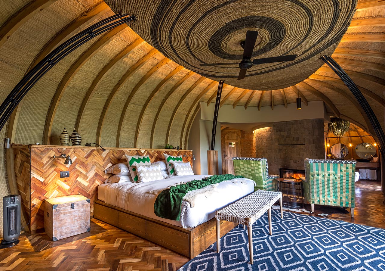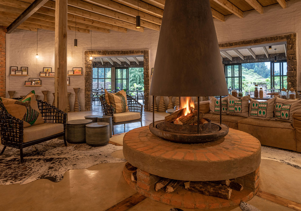 Bisate Lodge is located in the natural amphitheatre of an eroded volcanic cone and has dramatic views of the peaks of the volcanoes Bisoke and Karisimbi rearing up through the Afro-alpine forests of nearby Volcanoes National Park. Six luxurious en-suite villas maximise comfort and views while retaining environmental principles and reflecting the culture of rural Rwanda. Each guest contributes to Bisate’s biodiversity conservation and local community projects – making a far-reaching impact on an iconic Critically Endangered species: the mountain gorilla.